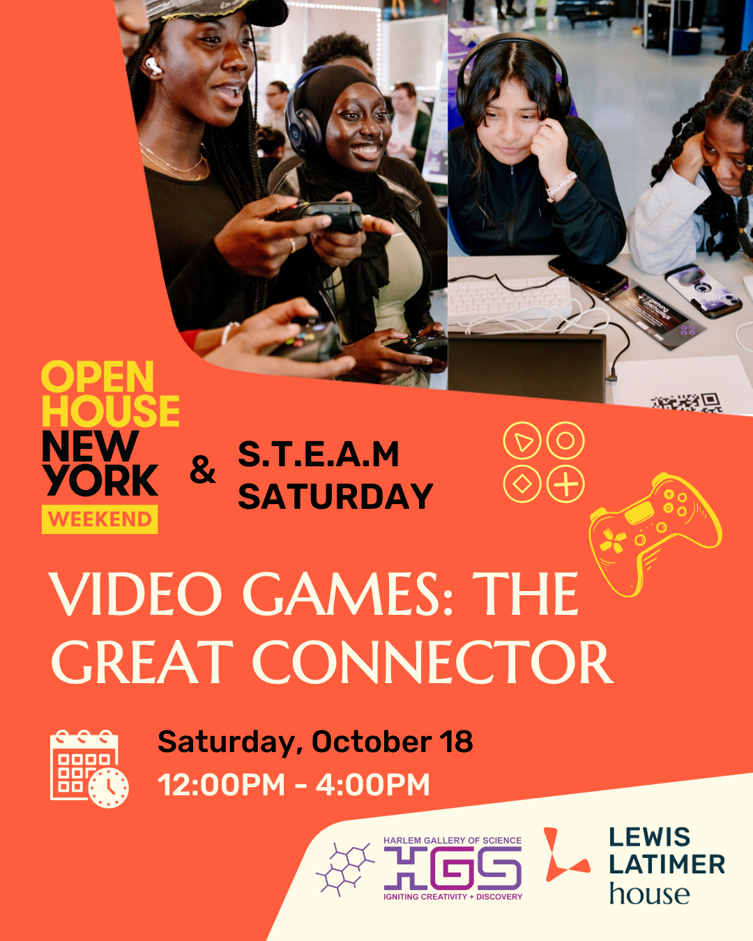 Questions like these are raised by a traveling expo—Video Games: The Great Connector—that will be at the Lewis Latimer House for one day only. Come play collaborative video games, reflect on your favorite characters through drawing activities, and discover potential careers in the digital game industry with our partners from the Harlem Gallery of Science!